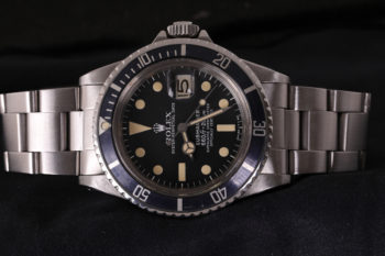 Questo orologio è uno dei primi scritta bianca. Il quadrante e’ un MK1 con una splendida patina: possiamo distinguerlo dal fatto che la “L” di Rolex è perfettamente centrata alla corona. La scritta SUBMARINER ha una lunghezza paragonabile alla scritta in cui compaiono le profondità, i 6 sul quadrante risultano essere chiusi e a ore sei compare la scritta “SWISS-T<25” .