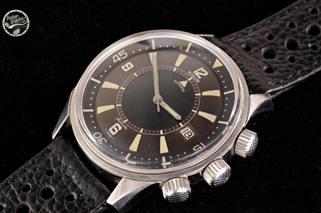 Nel 1963 JLC presenta il Polaris. Fu commercializzato come “un orologio per un uomo d’azione”: che fosse un uomo d’affari, un esploratore o semplicemente un appassionato, questo era l’orologio che avrebbe indossato. Impermeabile fino a 30 bar, il Polaris monta un’innovativo fondello a compressione a tre strati e 16 fori per migliorare la trasmissione del suono senza prevaricarne l’impermeabilità. Ne furono prodotti 1.714 esemplari tra il 1965 e il 1970. Per gli standard odierni non è poi un numero così impressionante, ma all’epoca era considerato un enorme successo, soprattutto per un orologio così “di nicchia”. La cassa larga 42 mm , decisamente sovradimensionata per l’epoca, era realizzata per dare più spazio al quadrante, migliorandone la leggibilità. Le casse del Polaris erano realizzate da Piquerez, produttore di casse per orologi subacquei brevettate “Piquerez Compressor System”.