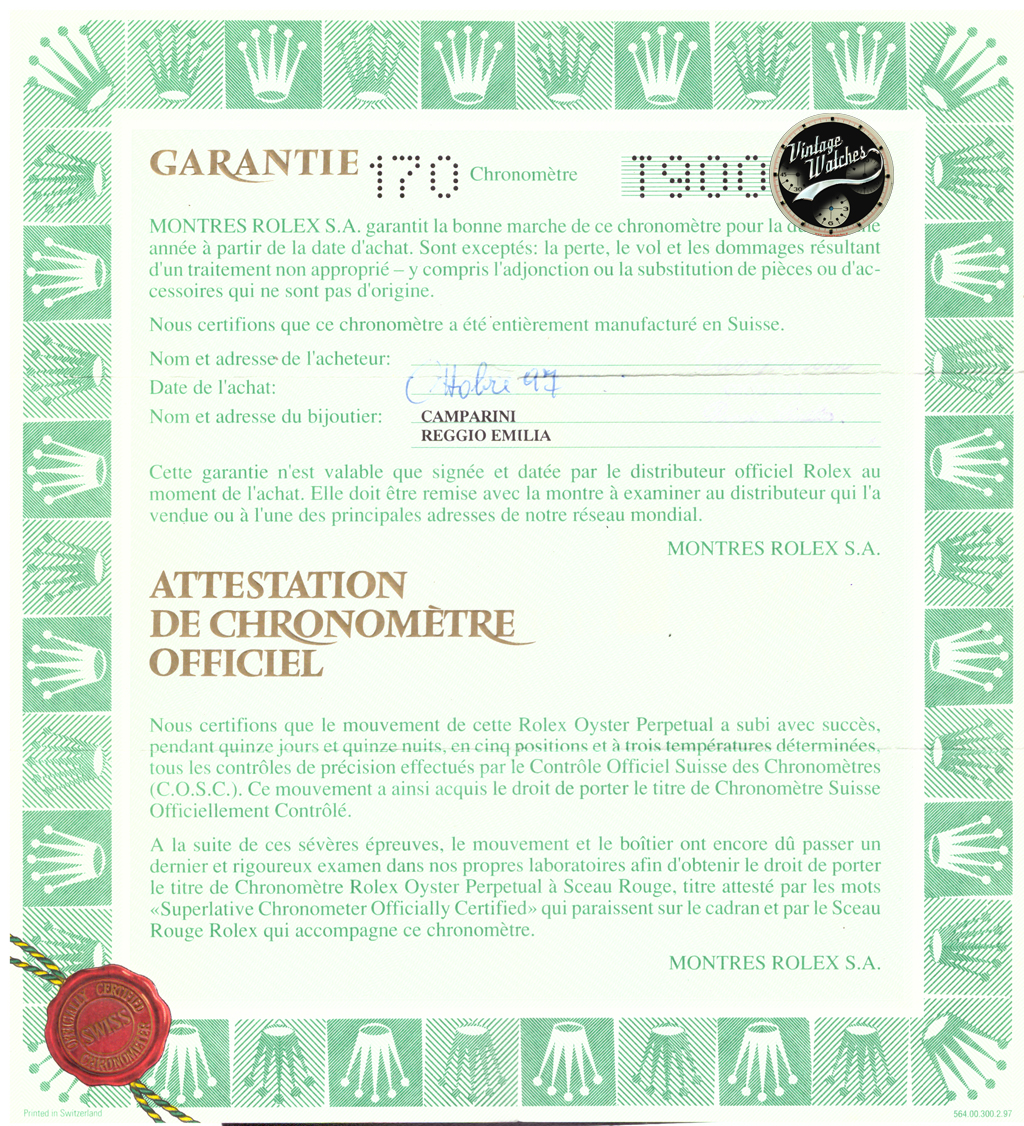 | Documenti originali | Garanzia e service Rolex |